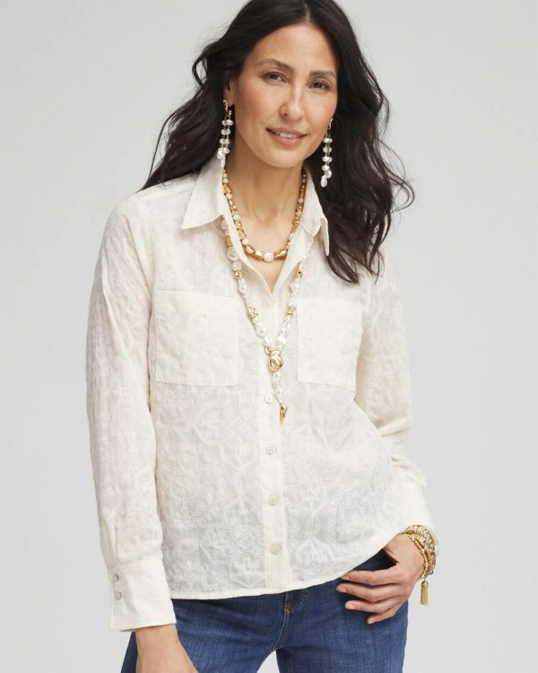 Add this new Embroidered Pocket Collared Shirt to your spring 2025 wardrobe. Showcasing a lovely, ready-to-wear style, spring design, and two front pockets.