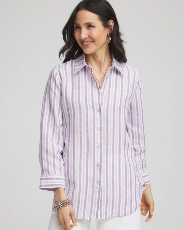 It’s no wonder we can’t keep our No Iron™ linen shirts in stock. This ready-to-wear right-out-of-the-dryer (without the hassle of ironing) top moves with you effortlessly for all-day comfort. It’s a perfect fit every time in any season, whether on its own or as a base layer. Designed with a flattering shirttail hem and a tonal plum striped print, this button down pairs perfectly with jeans or pants.