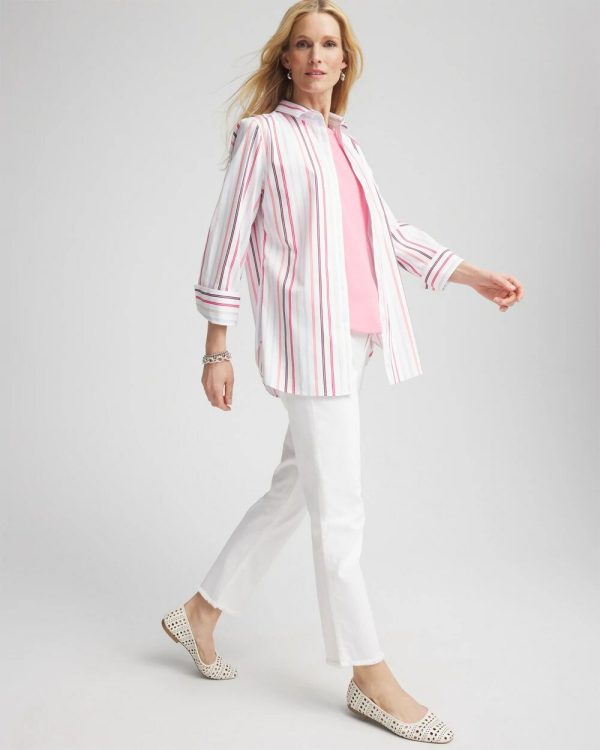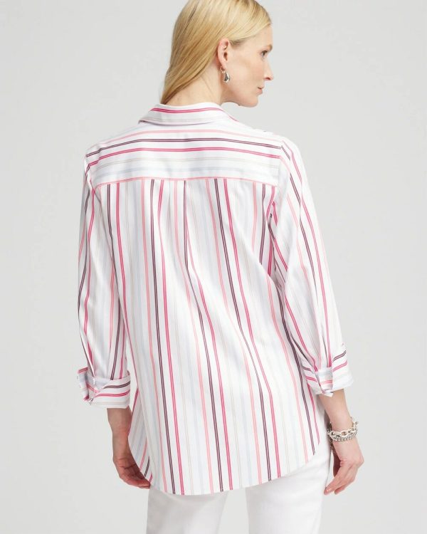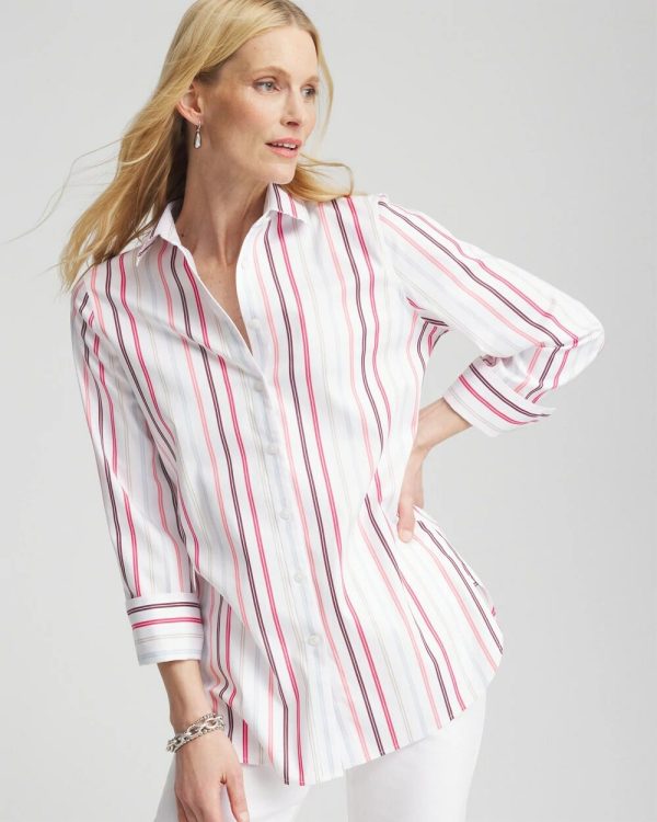 It’s no wonder we can’t keep our No Iron™ stretch shirts in stock. This ready-to-wear right-out-of-the-dryer (without the hassle of ironing) top moves with you effortlessly for all-day comfort. It’s a perfect fit every time in any season, whether on its own or as a base layer. Designed with a flattering shirttail hem and striped print, this button front pairs perfectly with jeans or pants.