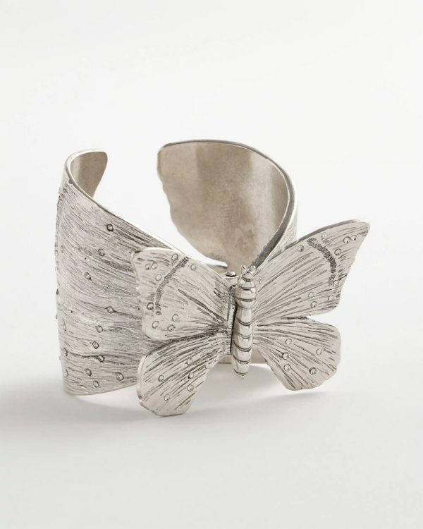 Perfect your styles with this new Silvertone Butterfly Stretch Cuff Bracelet. Pair with glamorous and perfectly matching motif from Chico’s Bracelet Bar.