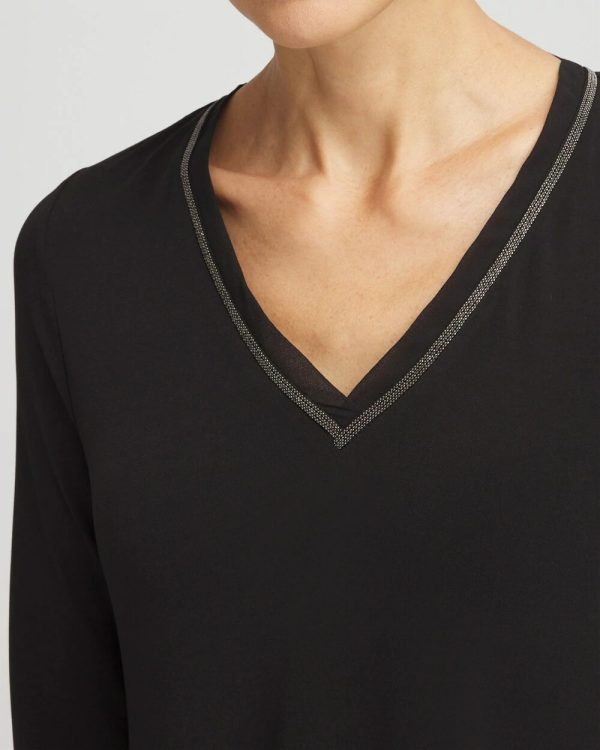 - Classic fit, 3/4 sleeves, V-neck with ballchain detail, pockets, midi-length, A-line.