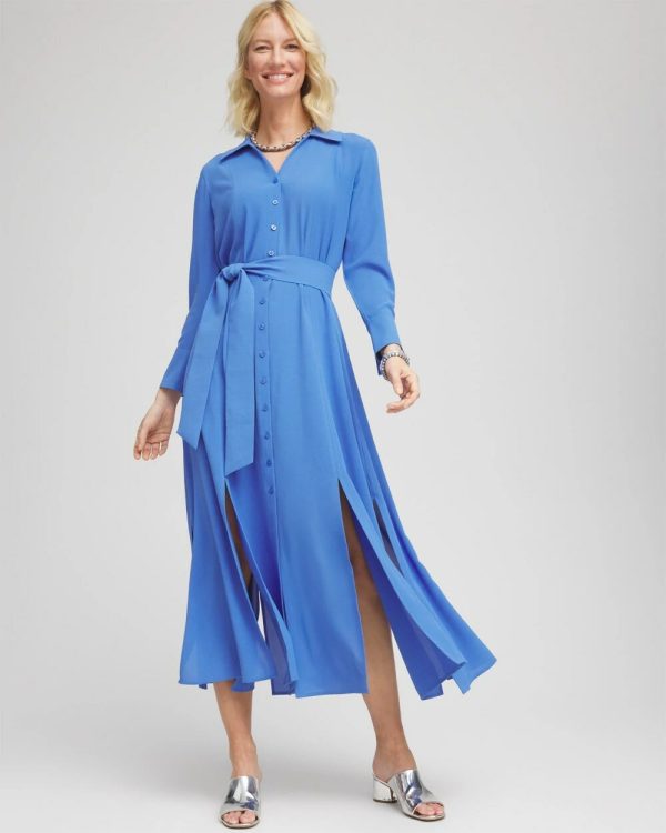 Add this trend-setting style to your 2025 dress collection — Chico’s new Belted Split Hem Maxi Shirtdress. Showcasing a flattering silhouette with a removable belt, long-sleeves, split neckline, and stylish front and back seaming.