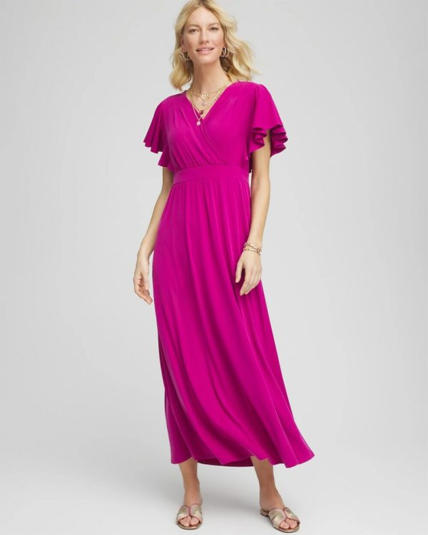 A spring must-have style, Chico’s new Flutter Sleeved Jersey Maxi Dress showcases a flattering fit with a streamlined A-line silhouette and split neckline.