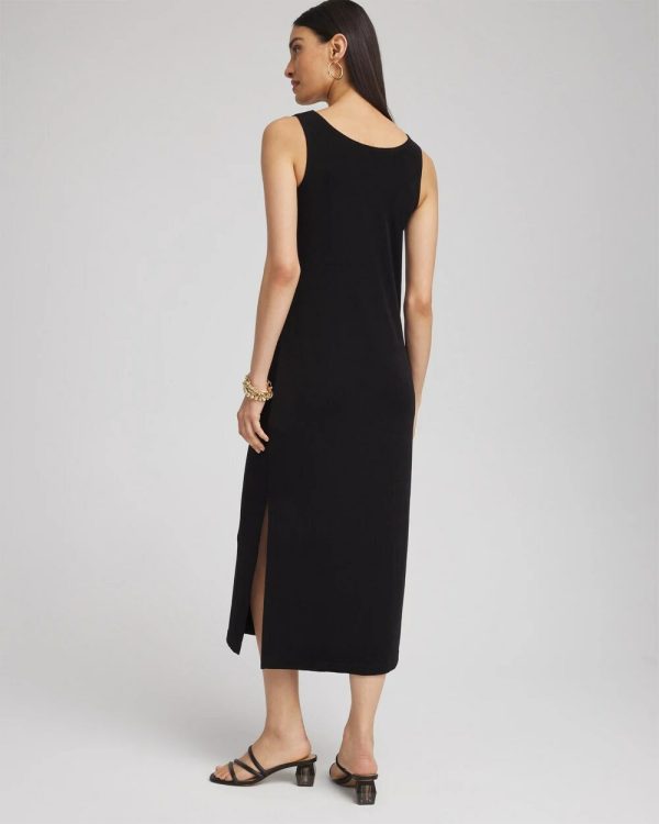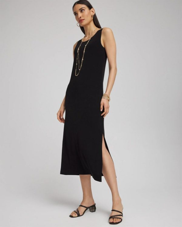 - The Fit: Classic fit; sleeveless with scoop neckline; 53″ regular length, 50.5″ petite length.