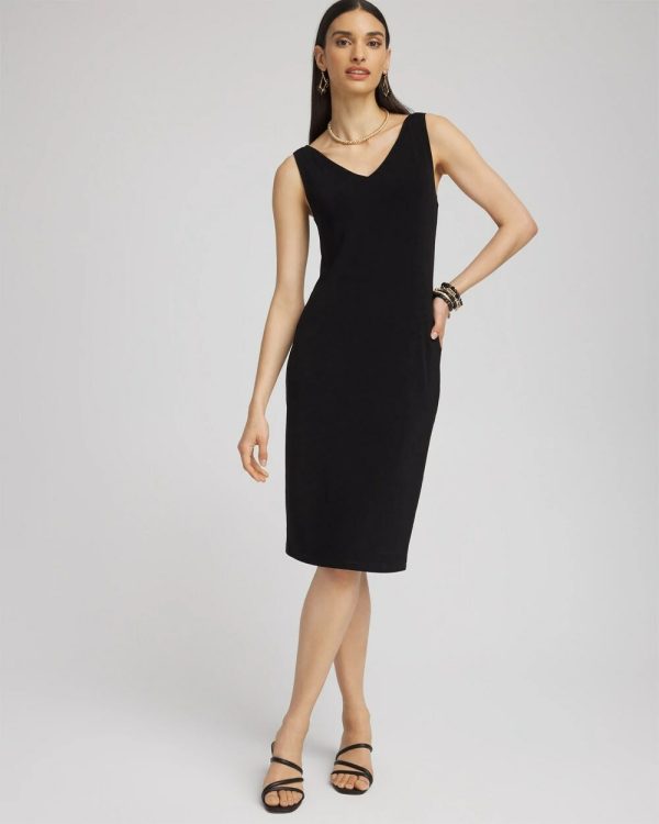 You’ll love the intelligent design of Chico’s new Travelers™ Convertible Tank Dress. The double neckline is what really shakes things up—it’s a v-neck and a scoop neck in one! The versatility of this tank dress makes it perfect for packing light, especially when you pair it with toppers from our Travelers™ line. Travel-friendly, wrinkle-resistant naia sustainable fabric.