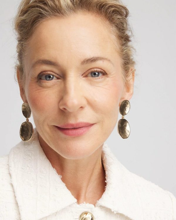 Pair these new Gold Tone Disc Drop Earrings with all your favorite gold-tone Chico’s jewelry.