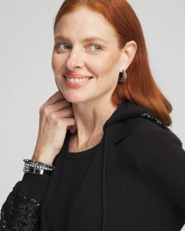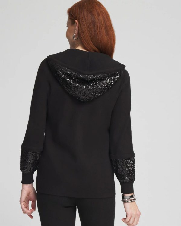 Add this glamorous Zenergy® Luxe Sequined Sweater Blazer to your wardrobe this season. Stand out with dazzling sequined details along the hood, front pockets, and arm cuffs. Made with Chico’s signature cashmere-blend LENZING™ ECOVERO™ fabric for ultimate sophistication, comfort, and style.