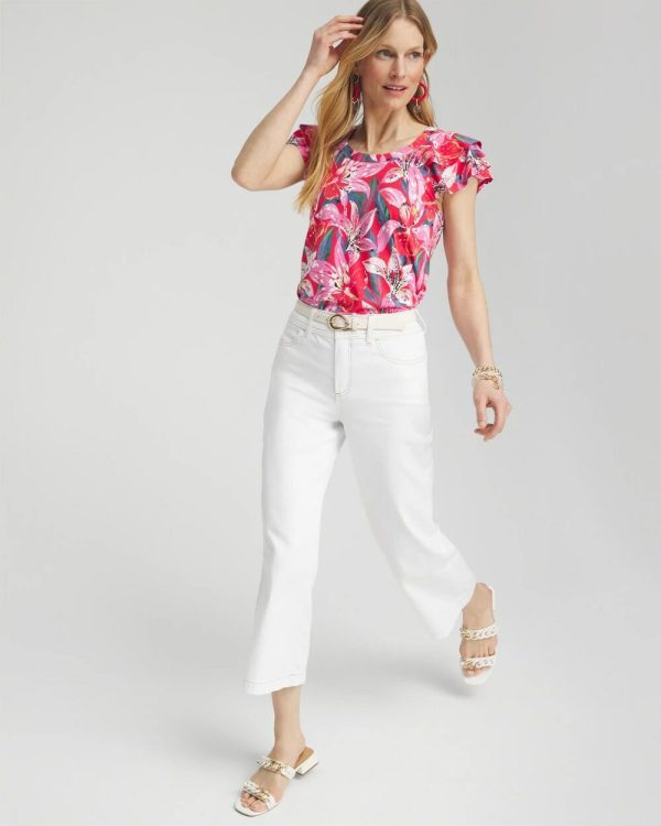 Try on our newest fit, the Cropped Wide Leg Jeans. Made with our soft, lightweight stretch denim, this design features back waist darts and angled front pockets to flatter your waistline, and a fashion-forward wide leg fit, plus a classic trouser hem. Be the first of your friends to pair these new jeans crops with tees and tanks.