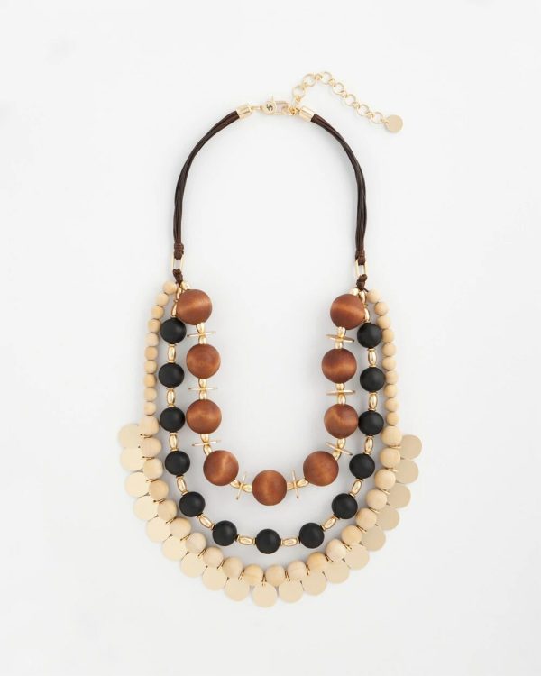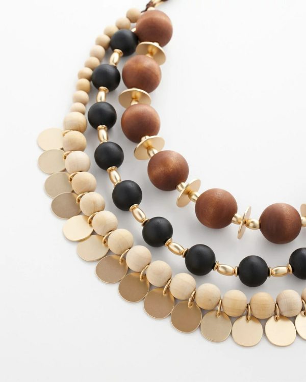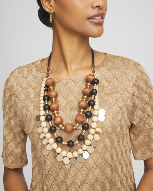This exquisite, handcrafted Chico’s Originals necklace makes a distinct statement, showcasing a harmonious blend of natural and dyed wood beads. The unique spheres are meticulously hand-strung, ensuring a high level of craftsmanship and attention to detail. Accentuated with elegant brass metal beads and discs, this piece adds a touch of sophistication and contrast to the warm hues of the wood. The dye process not only enhances the aesthetic appeal but also highlights the intricate natural grains of the wood, making each bead truly one of a kind. This necklace is not just an accessory; it is a celebration of individuality and artistry, perfect for those who appreciate unique and handmade jewelry. Featuring metallic, golden, and tonal wooded beading. Pair with matching accessories from Chico’s Global Textures Collection.