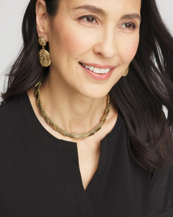 Add this new eye-catching Gold-Tone Brass Collar Necklace to your 2025 collection. Pair with Chico’s iconic jewelry collection.