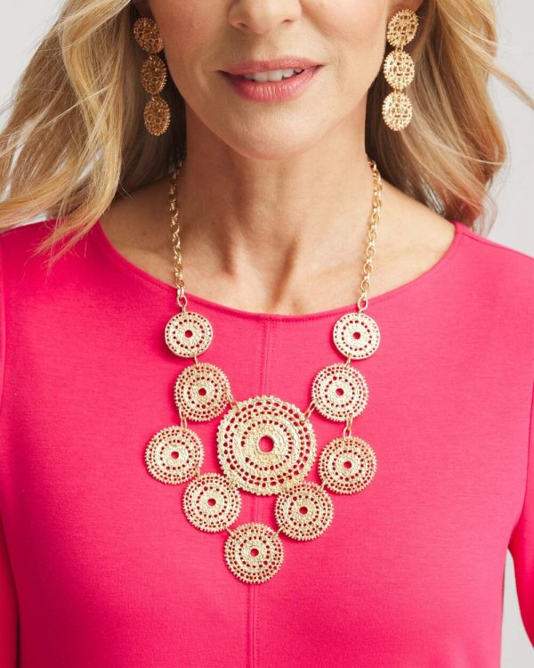 *New Showstopper alert* Add this new must-have Gold-Tone Lace Bib Statement Necklace to your ‘stand-out from the crowd’ collection. Pair it with Chico’s matching, iconic jewelry styles.