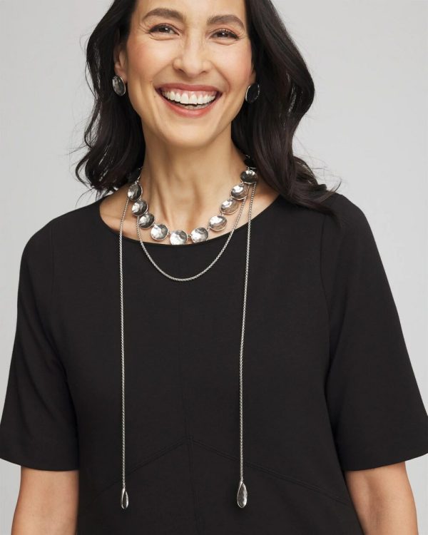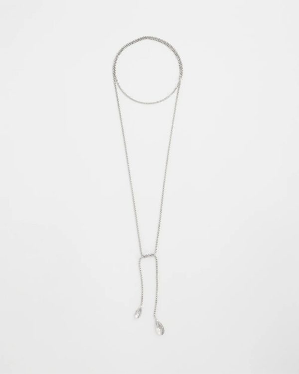 Pair this new Silver Lariat Necklace with its matching three piece set, including pendant and collar layers.