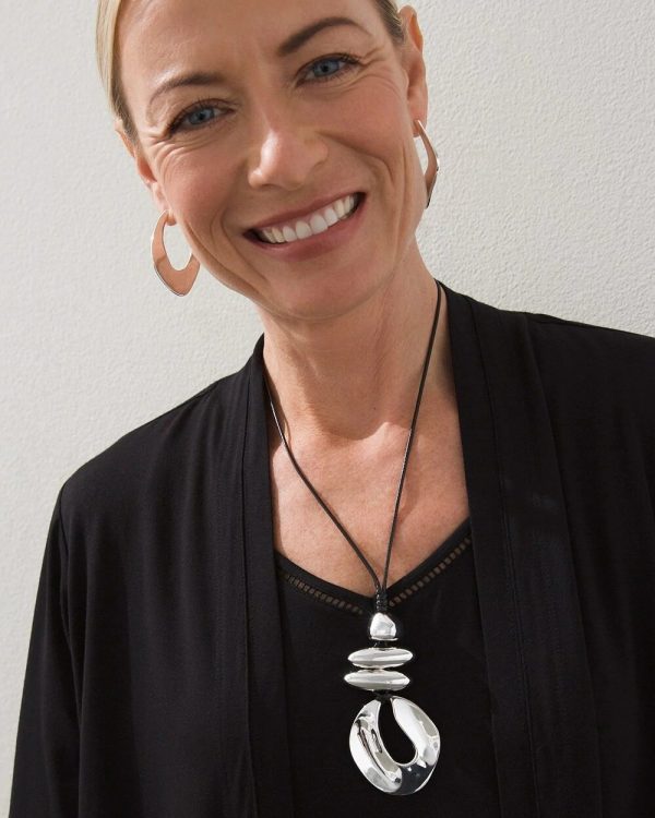 Classic beauty radiates from our Silver Tone Adjustable Pendant Necklace. This contemporary, adjustable length design gives you styling options. Perfect for accenting solid color tops, mix and match this accessory with silver tone pieces from your collection.