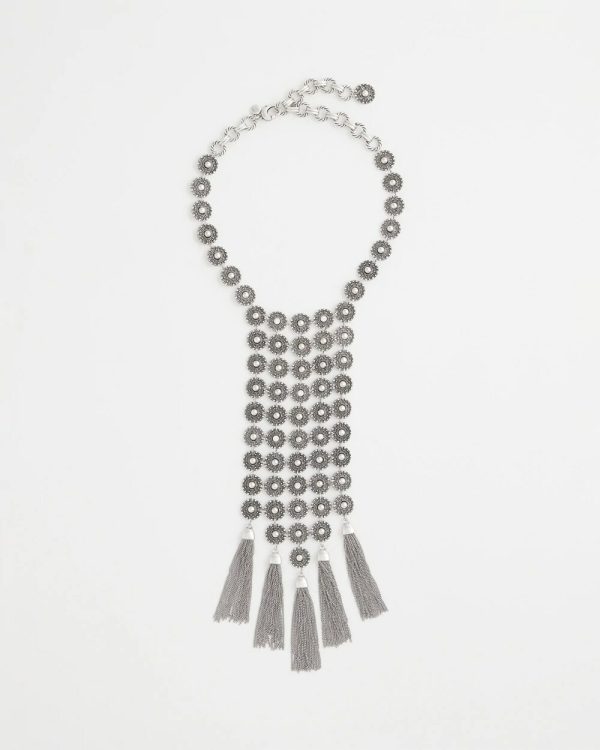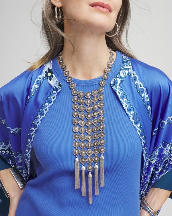 Your spring-2025 wardrobe needs this glamorous cascading adornment — Silver Tone Tassel Statement Necklace. Wear with your open-neck styles. Pair with pieces from Chico’s Silver Nomadic Charms Collection.
