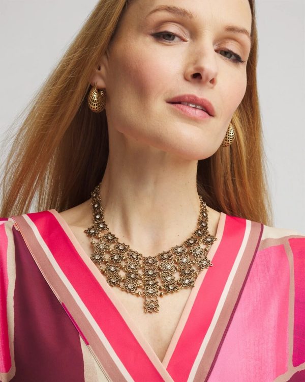 Showstopper Alert— Meet Chico’s new must-have for the season (and all seasons) — the Sparkle Lace Bib Necklace. Pair with matching wrap cuff, and all the glamorous Chico’s bracelets, earrings, and necklaces and wear with dressed-up or dressed down outfits.