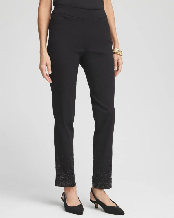 The new Brigitte Sequined 180 Slim Ankle Pant features ombre sequin detailing at the hem. Signature So Slimming® inner panel extends all the way around, shaping and smoothing your shape for a flattering look, and angled front pockets enhance the effect. The rise sits just below the natural waist, offering comfort and style for festive or everyday wear. Available now in the season’s new hues, Rose Smoke and Black.