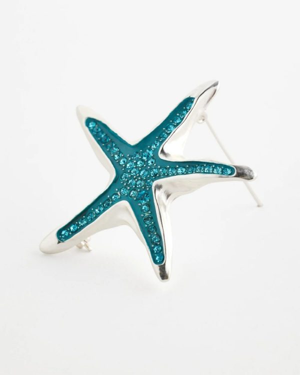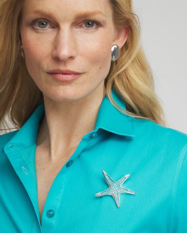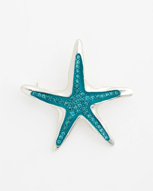 Wear a small piece of the beach with this glamorous, sparkly starfish brooch. Showcasing a special technique that recreates an all-over blue diamond effect. Pair with like pieces from Chico’s new brooch collections. Accessorize your tops, purses, or jackets with Chico’s new brooch.
