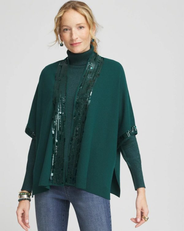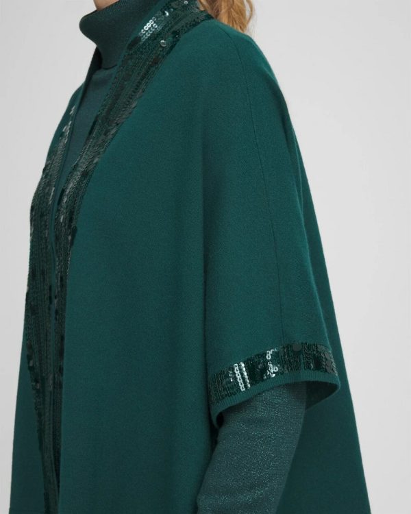 The perfect holiday layer — our new and stunning Sequin Placket Ruana is here just in time for the festive season. Meticulous tonal sequined detailing lines the placket and cuffs. Pair with the made-to-match sweater.