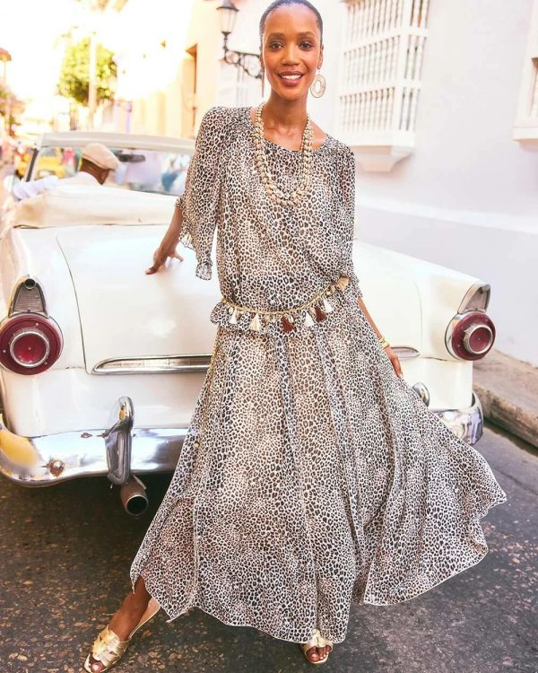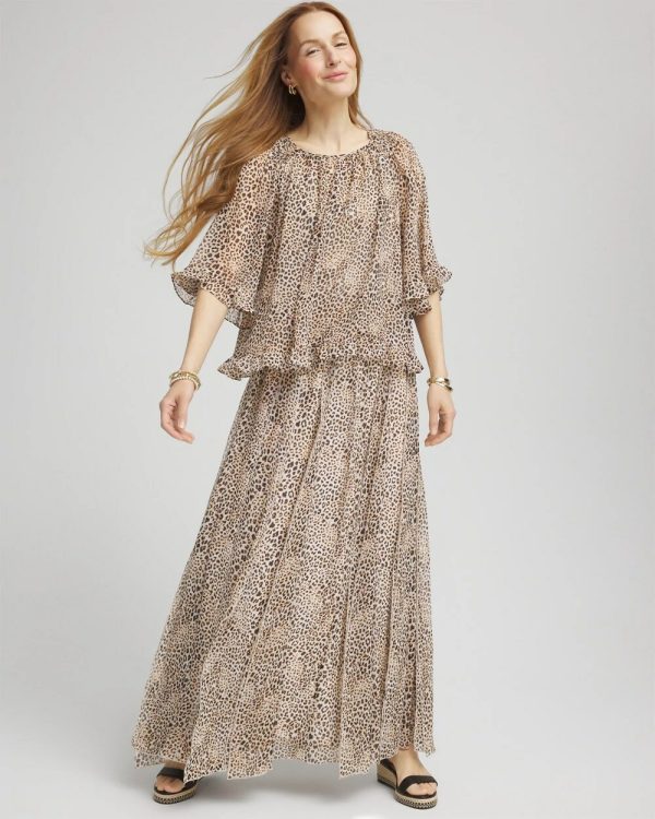 Cut from glamorous georgette fabric, printed with cheetah spots. The perfect flowy skirt to wear anywhere—from a beach stroll to brunch or for a classy night out.