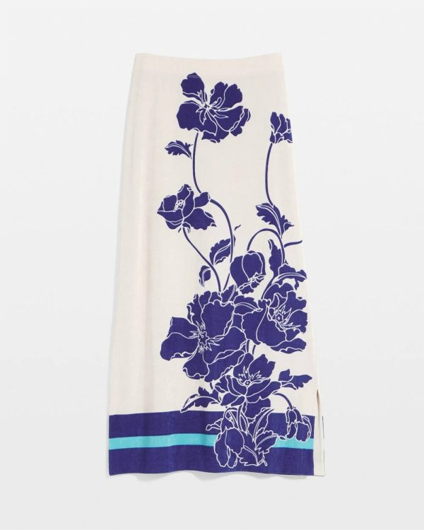 - Classic fit; pull-on, side slit, midi skirt.