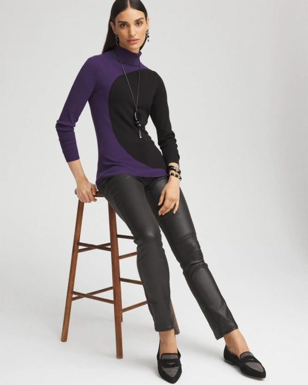 Enjoy the crisp fall weather in our ECOVERO™ Colorblock Turtleneck Sweater. Made with eco-friendly LENZING™ ECOVERO™ viscose fibers, this soft, lightweight turtleneck is a must-have mainstay for layering season. The purple and black colorblock design pairs perfectly with our Brigitte pants or jeans, it’s sure to become one of your go-tos.