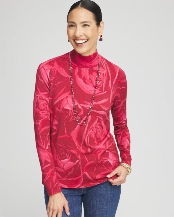 Classic fit with bracelet sleeves and a mock neckline — our new Rose Print Mockneck Pullover Sweater is just what you need to bring out your festive mood. Pair with our Girlfriend denim for a fun and casual look this season.