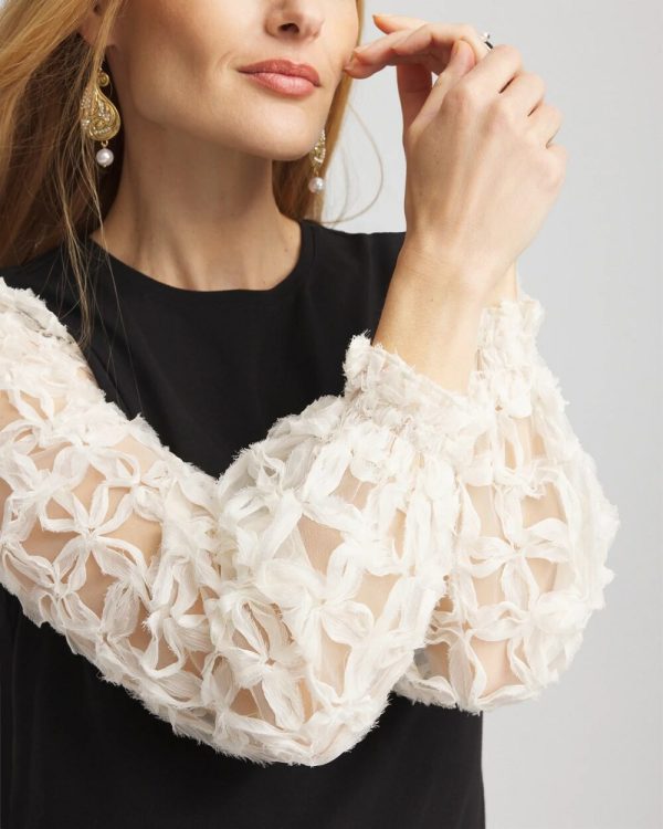 This new Applique Mesh Sleeve Top is designed with decorative mesh sleeves and a cotton span body. Pair with our Girlfriend jeans for an elevated casual look.