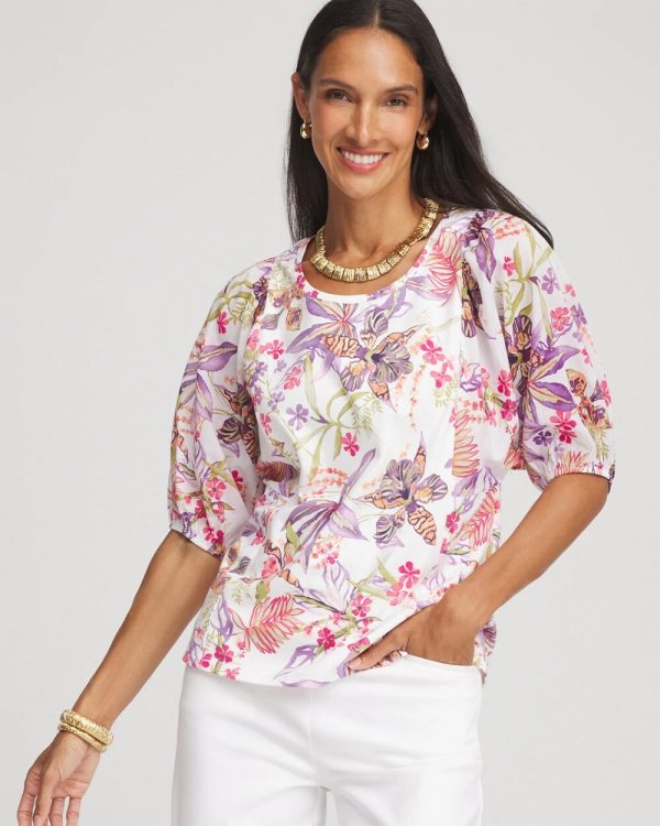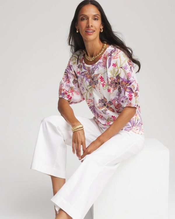 Chico’s Tees | Floral Dolman Sleeve Knit Top Alabaster Women