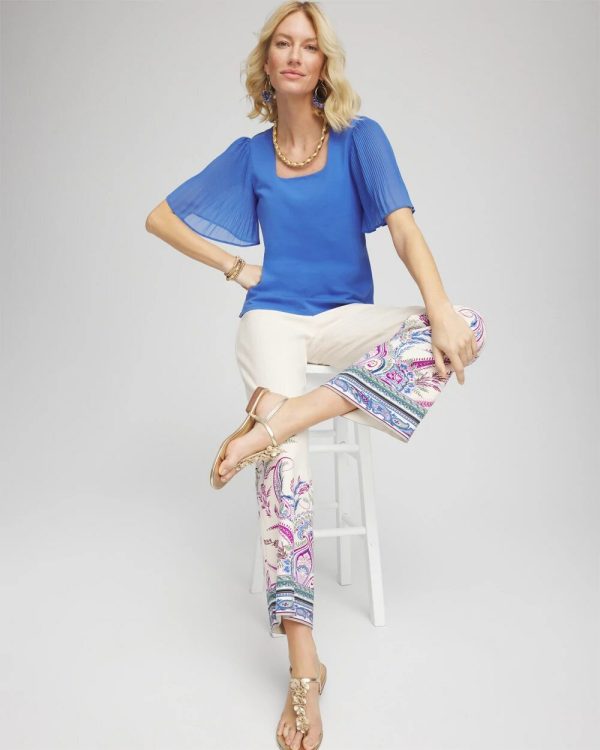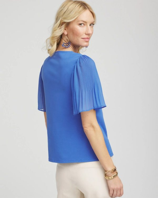 Keep ordinary at bay in this flattering, goes-with-everything Square-Neck Pleated Flutter-Sleeve Tee. Imbues upscale style with a square neckline and pleated flutter sleeves.