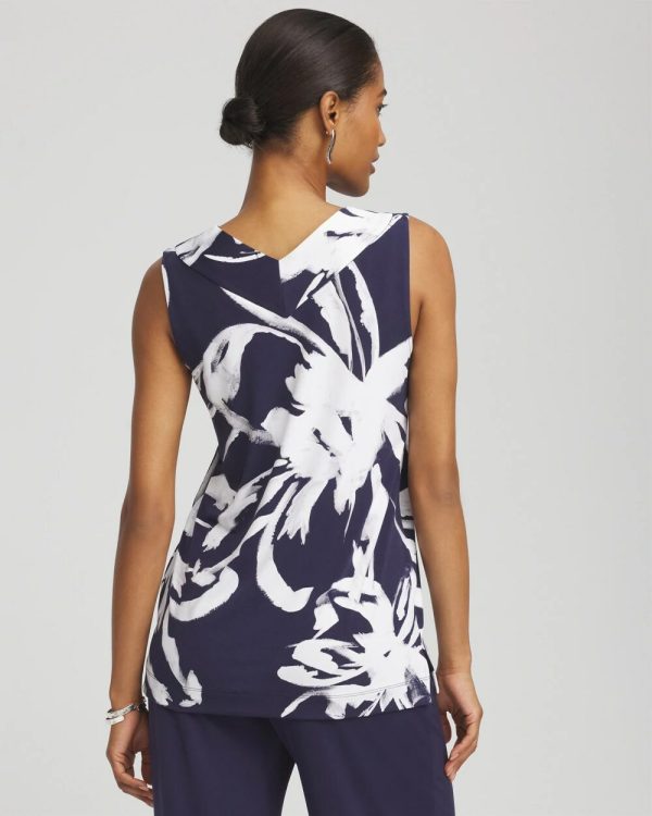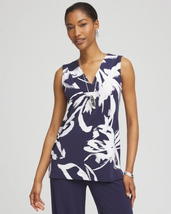Chico’s Tees | Travelers™ Knit Floral V-Neck Tank Passport Blue Women
