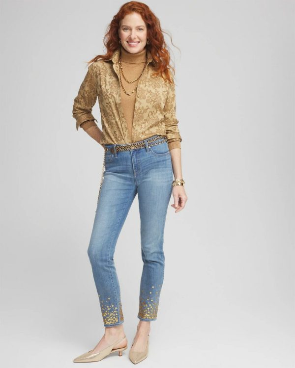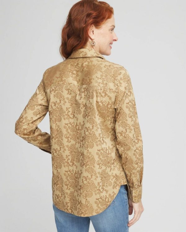 New Gold Jacquard Shirt in our coveted No Iron™ fabric, made to defy wrinkles and stay fresh from the dryer to the end of your festive holiday party. There’s a reason why our No Iron™ top is a five-star rated, bestselling customer favorite. It moves with you for all-day comfort and stays looking brand new without the effort of ironing or dry cleaning. It’s the perfect shirt in any season, whether on its own or as a base layer. Designed with a sharp-looking shirttail hem, button cuffs, and a jacquard print, this button front pairs with jeans or pants. Available now in new animal prints, paisley, graphic prints, and more!